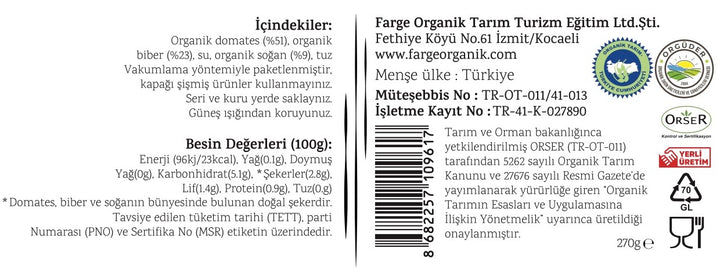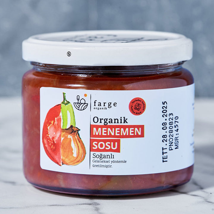 Mevsiminde toplanmış en taze domates, biber ve doğal baharatlarla hazırlanan Farge Organik Menemen Sosu, geleneksel tariflerden ilham alarak katkı maddesi ve koruyucu içermeden üretilmiştir. Tamamen organik sertifikalı malzemelerle hazırlanan bu özel sos, sofralarınıza doğallık ve lezzet katmak için kavanozlandı.